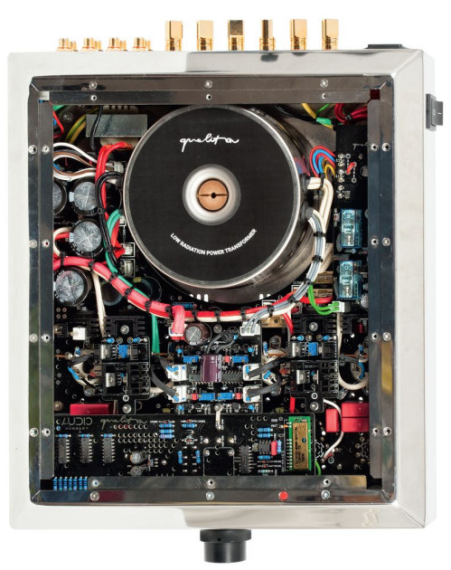 W pierwszym stopniu wzmacniającym (zaraz za wejściem) pracuje ECC83 marki Tungsram, a w stopniu sterującym - popularne E88CC/6922S. Układ zmontowano bardzo starannie, z użyciem płytek drukowanych (do nich z kolei można się dostać, odkręcając dolną pokrywę obudowy) i wysokiej jakości komponentów biernych (WIMA, Nichicon, Omron).