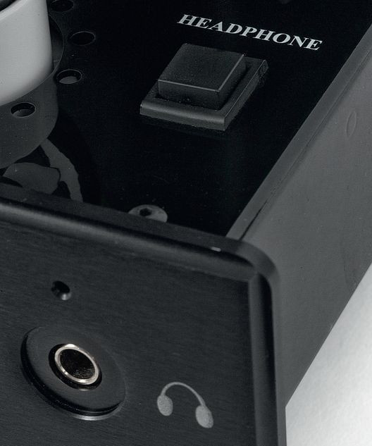 Wyjście słuchawkowe aktywujemy za pomocą przełącznika, który rozdziela sygnał pomiędzy słuchawkami a kolumnami – w każdym przypadku biegnący wprost z transformatorów separujących i lamp 300B.