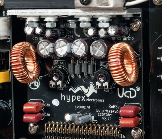 W I15 Prisma zainstalowano moduł końcówek mocy o symbolu UcD102. Hypex rekomenduje go do wzmacniaczy o mocy 100 W przy 4 Ω i dokładnie taka wartość pojawia się w specyfikacji Primare (a przy okazji - 60 W przy 8 Ω).