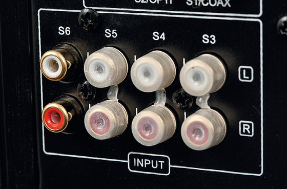 Są cztery analogowe wejścia liniowe, ale nie ma wbudowanego przedwzmacniacza phono (który jest w HTA-2000B). Są też dwa wyjścia niskopoziomowe - jedno regulowane (np. na zewnętrzną końcówkę mocy), drugie o stałym napięciu (np. na rejestrator).
