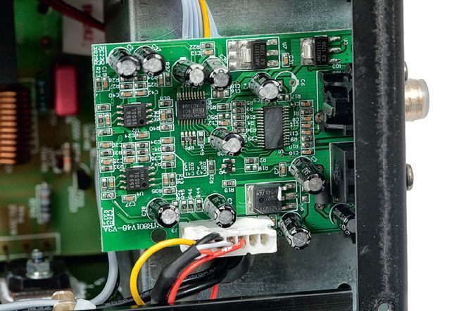 Na niewielkiej płytce w pobliżu tylnej ścianki znajduje się sekcja cyfrowa, przetwornik C/A to układ 32 bit/384 kHz, jednak takich sygnałów, z uwagi na ograniczenia samych wejść, do SV-237MK nie uda się doprowadzić.