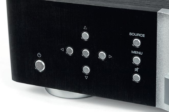 Podobnie jest tutaj, koncepcję "pociągnięto" nawet znacznie dalej, bo mamy też spory wyświetlacz i menu, do którego wchodzimy za pomocą kursorów. Aby przełączać źródła, należy użyć przycisku, który otwiera wejście do podmenu źródeł (później należy operować kursorami). Tego typu "wynalazki" niekoniecznie są wygodne... co jednak traci na znaczeniu, gdy korzystamy z pilota.