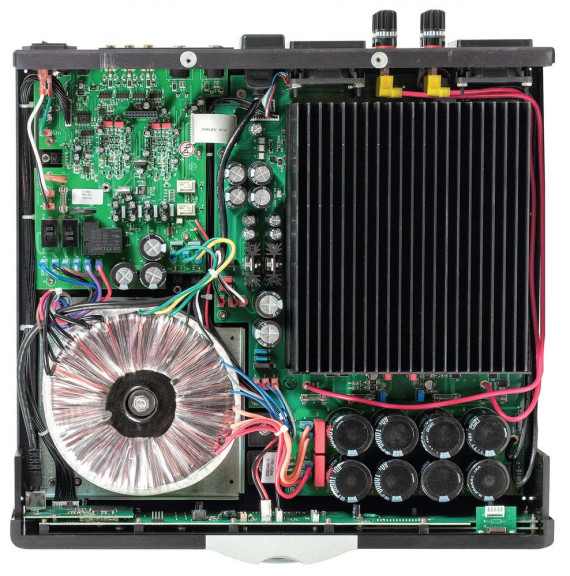 Nietypowy układ wewnętrzny (ulokowanie i forma radiatora) wiąże się z dość kompaktową (jak na wzmacniacz tej mocy) obudową i jednocześnie zarezerwowaniem łatwo dostępnej przestrzeni dla modułu rozszerzeń wersji Digital.