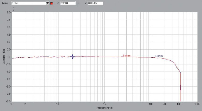 Przy 4 Ω moc jest dokładnie podwajana - to efekt imponujący, chociaż nie tak rzadki w przypadku wzmacniaczy impulsowych. W klasie AB podobne rezultaty (podwojenia mocy) osiągają tylko najpotężniejsze "piece".