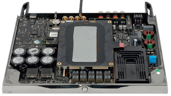 W szczupłej obudowie wzmacniacza nie udałoby się zmieścić klasycznego, liniowego zasilacza, więc zastosowano konstrukcję impulsową, która zasila wszystkie sekcje.