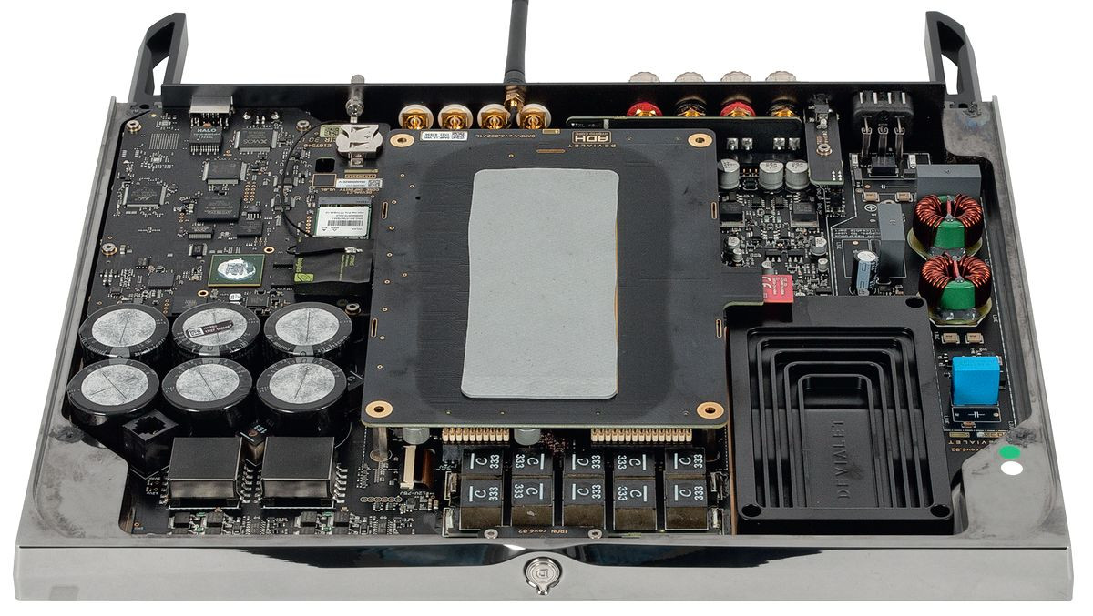 Konstrukcja wewnętrzna wzmacniacza Devialet Expert 140 Pro jest również pełna innowacyjnych rozwiązań, a większość z nich ma autorskie, tajemnicze skróty. Na pierwszy plan wychodzi technika wzmacniania sygnałów ADH - Analog Digital Hybrid. Expert 140 Pro nie jest typowym wzmacniaczem w klasie D.