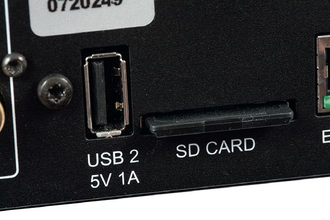 Jest też dodatkowe gniazdo USB-A (dubluje możliwości złącza z przedniego panelu) i slot na karty pamięci SD - już nie do odtwarzania muzyki, lecz do zapisywania wszystkich ustawień wzmacniacza (jako kopię bezpieczeństwa jego wewnętrznej pamięci).