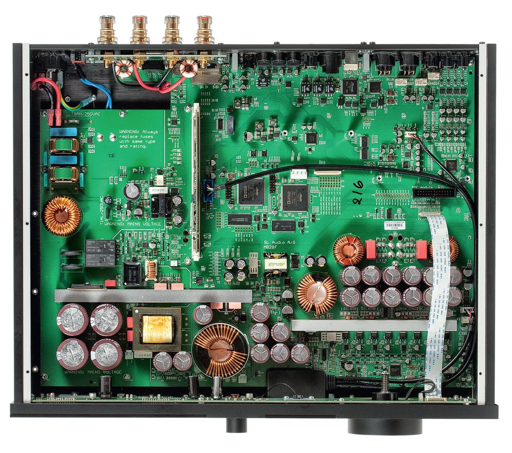 Końcówki mocy są impulsowe – tak jak w przypadku innych wzmacniaczy w klasie D – ale TDAI-3400 różni się od nich cyfrowym blokiem sterującym w firmowej formule Equibit.