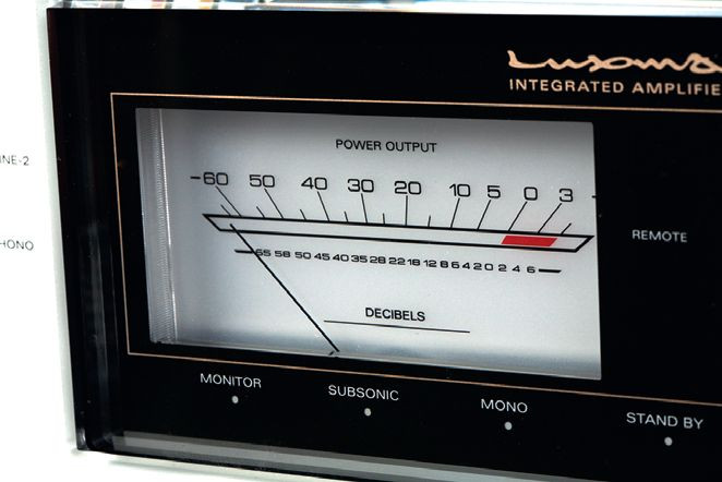 Wzmacniacze wyposażone w tzw. VU Mettery wyglądają atrakcyjnie, ale dostają w naszym laboratorium dodatkowe zadanie. W L-509X wskaźniki wyskalowano w dB, poziom 0 dB znajduje się dość daleko na skali, co pozwala przypuszczać, że Luxman ustalił tutaj moc znamionową.