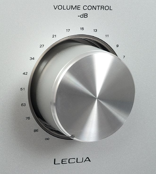 Wzmocnienie wyskalowano od 0 do minus nieskończoności, gałka obraca się płynnie, z lekkim oporem - połączona jest z potencjometrem, ten jednak sam nie tłumi sygnału, ale steruje zaawansowanym systemem regulacji o nazwie LECUA (więcej o nim w dalszej części).