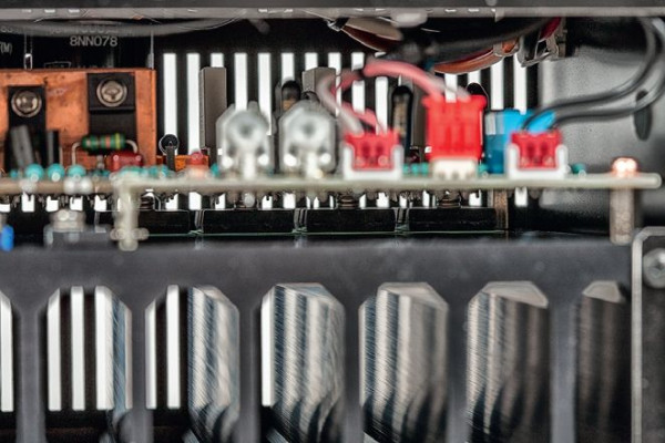 W końcówce mocy są dwa stopnie wzmocnienia - pierwszy z trzema równoległymi gałęziami i układami Darlingtona, w drugim (wyjściowym) pracuje osiem (na kanał) tranzystorów w konfiguracji przeciwsobnej.