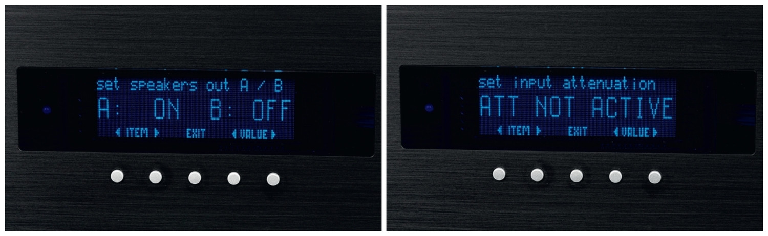 Wzmacniacz ma dwa dowolnie konfigurowalne wyjścia głośnikowe, zaciski każdego z terminali podłączono bezpośrednio do końcówek mocy. W ramach menu przewidziano także ogólny przełącznik czułości, obejmujący wszystkie wejścia.