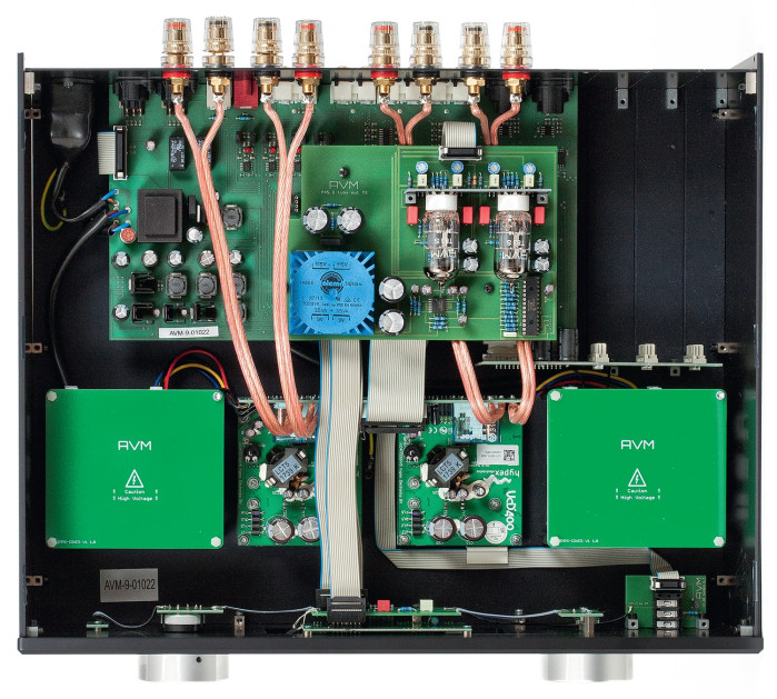 Triody w sekcji przedwzmacniacza mają oznaczenia AVM.