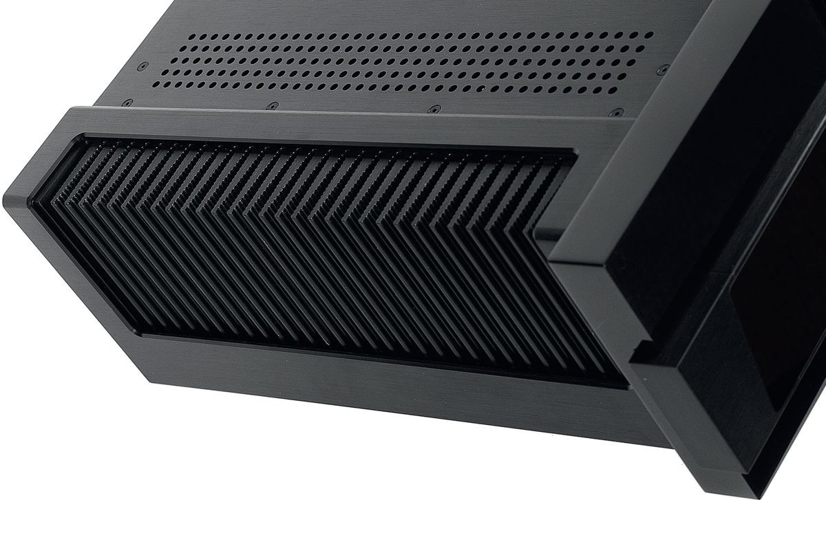 Przenikają się w niej radiatory, metal szczotkowany i powierzchnie błyszczące. Wszystko spina symetria podzielonej (wcięciem) górnej płyty. Całość intryguje, zachwyca, budzi respekt... a dzieło wieńczy krwawe logo Gryphona.