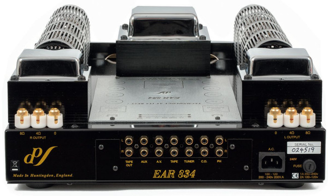 Sekcja przedwzmacniacza EAR Yoshino 834 jest także lampowa, ale aby się do niej dobrać, należy zdjąć dolną część obudowy. Tutaj zaangażowano elementy równie zasłużone i popularne, ECC83, wyspecjalizowane do takiej pracy. W stopniu sterującym (końcówkami mocy) pojawiają się natomiast ECC85.