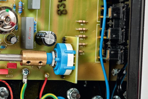 Zarówno potencjometr głośności (Alps), jak i selektor wejść (bezpośredni, mechaniczny wybierak) znajdują się tuż obok gniazd RCA i są mechanicznie sprzężone z pokrętłami na przedniej ściance za pomocą długich trzpieni, dzięki czemu ścieżka sygnału jest bardzo krótka.