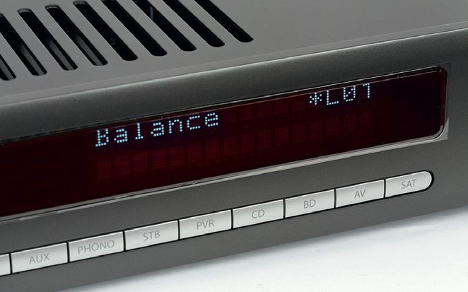 Pokrętło głośności znajduje się z lewej strony (to nietypowe), wybór źródeł jest bezpośredni (osiem przycisków), dziewiąty służy do szybkiego wyciszania.
