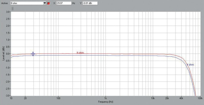 Mimo podobieństw konstrukcyjnych do starszego modelu A29, w nowym SA20 mamy inne wyniki pomiarów. Według specyfikacji firmowej moc w trybie stereo ma wynosić 2 x 50 W/8 Ω i 2 x 85 W/4 Ω, ale w rzeczywistości jest to znacznie, znacznie więcej - odpowiednio 2 x 118 W i 2 x 187 W!
