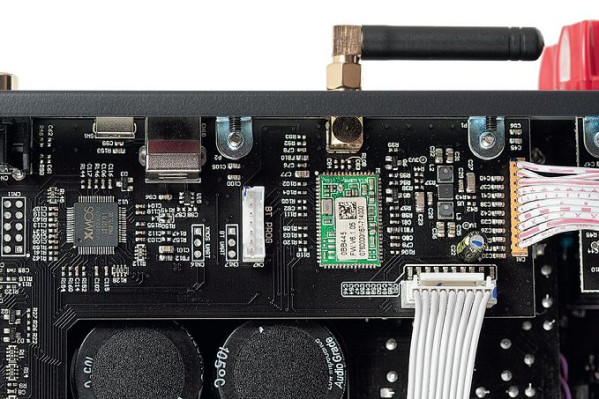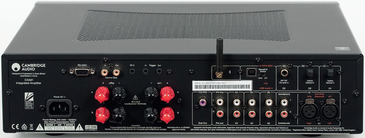 Na deser zostaje bezprzewodowe strumieniowanie Bluetooth z kodekiem aptX HD, który Cambridge Audio stosuje coraz częściej. Obok dwóch par terminali głośnikowych pojawia się typowe wyposażenie związane z systemowym sterowaniem (RS232 i 12V).