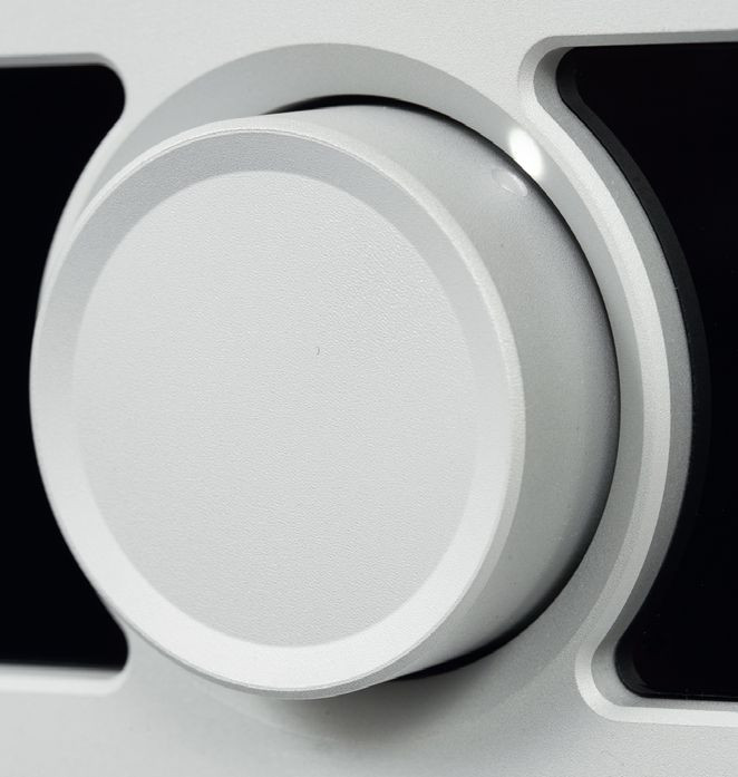 Płytę z czarnego akrylu "zakleszczono" w srebrnej, aluminiowej ramie, a pokrętła ulokowano w precyzyjnych wyfrezowaniach. Heed Lagrange prezentuje się nowocześnie, a indywidualizm podkreślają jeszcze szczeliny wentylacyjne na górnym panelu.
