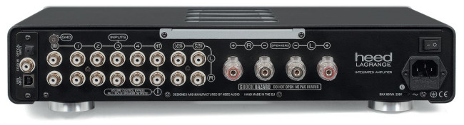 Heed Lagrange ma aż pięć wejść analogowych, w tym cztery liniowe i jedno dla gramofonu (z wkładką MM) plus wejście prosto na końcówkę mocy; jest też wyjście z przedwzmacniacza, a więc z regulowanym poziomem, i niskopoziomowe wyjście nieregulowane. Terminale głośnikowe to oryginalne elementy WBT – para takich "luksusów" ucieszy bardziej niż dwie pary przeciętnych zacisków.