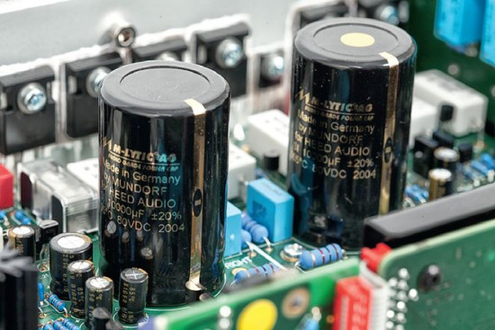 W większości tranzystorowych wzmacniaczy sygnał wyjściowy płynie z końcówek mocy niemal wprost (po drodze mogą być jeszcze obwody stabilizujące i zabezpieczające) do zespołów głośnikowych. Heed twierdzi, że gdy pomiędzy wyjściem a kolumnami pojawi się duża pojemność kondensatorów, będzie ona służyła za "magazyn energii".