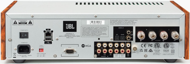 Nowoczesność JBL SA750 rozwija się dalej na tylnej ściance. Oprócz wejść analogowych – trzech liniowych i dwóch gramofonowych (niezależnie dla wkładek MM i MC) – jest garść złącz cyfrowych, a więc dwa optyczne i dwa elektryczne, bez USB-B, jednak strata to mniejsza, skoro SA750 potrafi strumieniować.
