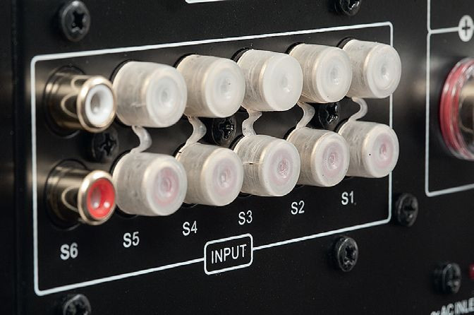 Oznaczenia gniazd (jak i samych wejść z pozycji selektora) są dość niekonwencjonalne, bo zamiast powszechnie przyjętych symboli CD, AUX mamy skróty cyfrowo-literowe: od S1 po S6 (S jak signal, a może jak stereo?).