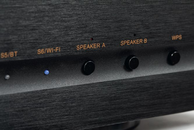 Oznaczenia w sekcji cyfrowej są już jednak typowe, a do dyspozycji mamy dwa złącza optyczne i dwa elektryczne. Nie ma USB, ale moduł odtwarzacza strumieniowego ten brak łagodzi.