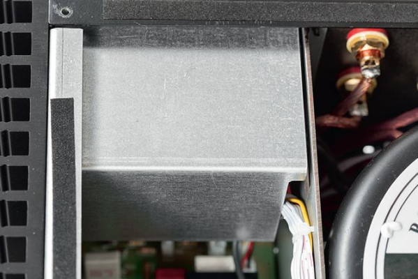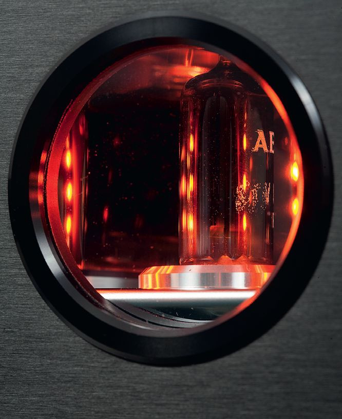 To właśnie lampa zasilania widoczna jest przez przednie okienko, podziwiamy więc element tylko pośrednio odpowiedzialny za brzmienie. Co było zupełnie racjonalne, bo lampa zasilania jest jedna, a ważniejsze dla brzmienia triody ulokowano niżej, optymalizując ścieżkę sygnałową.