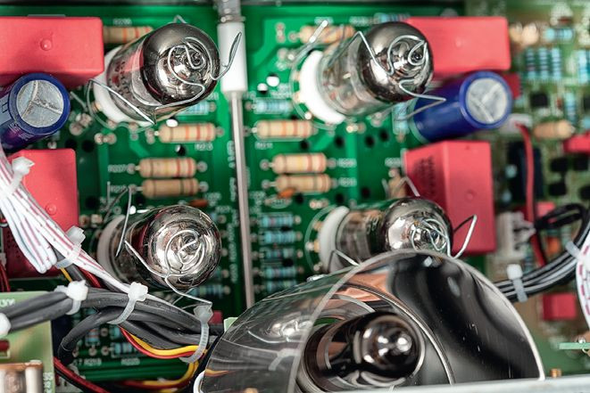 Pierwszy etap wzmocnienia napięciowego prowadzą dwie podwójne triody (po jednej na kanał) 6N2P wybrane z puli "militarnej". To lampy o charakterystyce zbliżonej do popularnych ECC83, ale zapewniające lepszą liniowość i niższy poziom szumów.