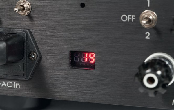 Kolejny przełącznik hebelkowy uruchamia odczyt prądu bias, niezależnie dla lamp lewego i prawego kanału. Ayon Audio stosuje (nie tylko zresztą w tym modelu) zaawansowany, automatyczny system "biasowania", który jednak nie nadzoruje ciągle pracy lamp, należy go wywołać i dopiero wtedy system przeprowadzi kalibrację.