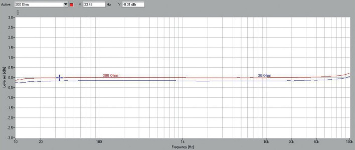Producent zadeklarował moc 300 mW przy 300 Ω oraz 1,7 W przy 50 Ω (na wyjściu niezbalansowanym). W naszych pomiarach przy 300 Ω moc wynosi 490 mW, a przy 30 Ω – 2700 mW.