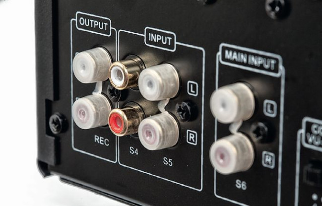 Oprócz wejść analogowych są też dwa wyjścia RCA (regulowane z przedwzmacniacza oraz nieregulowane dla rejestratora). Do sekcji analogowej przytulono panel wyzwalaczy 12 V, przełącznik do zmiany trybu podświetlenia wskaźników wychyłowych oraz wyłącznik trybu oszczędzania energii. Kolumny podłączymy do dwóch kompletów zacisków.