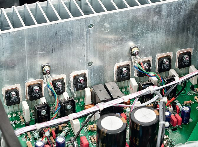 W końcówce mocy niczego już nie wymienimy, bo "opanowały" ją tranzystory, dwie pary (na kanał) elementów Toshiby – 2SA1941 oraz 2SC5198. Vincent stosował je już wcześniej, między innymi w integrze SV-500 (z jedną parą na kanał).