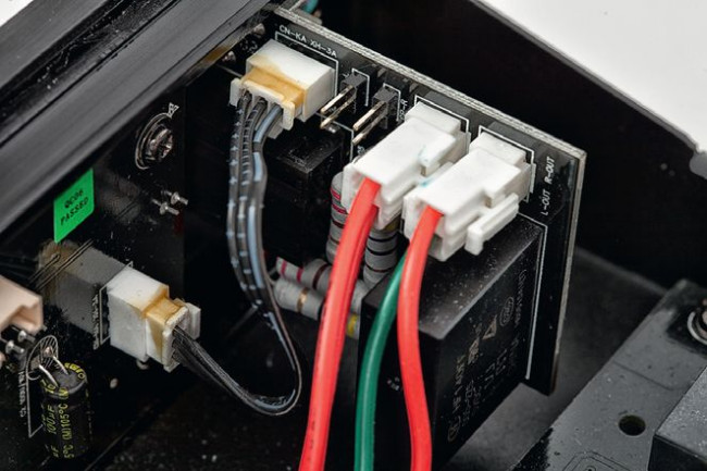 Regulacja głośności działa oryginalnie i... oszczędnie. Nie ma tutaj typowego potencjometru, ale jest nowoczesny układ z regulacją mikroprocesorową. Pozwala on skrócić ścieżkę sygnału (nie trzeba prowadzić przewodów do przedniej ścianki), jednak wzmacniacz nie ma wyświetlacza ani żadnego innego wskaźnika wysterowania, więc głośność regulujemy na czuja.