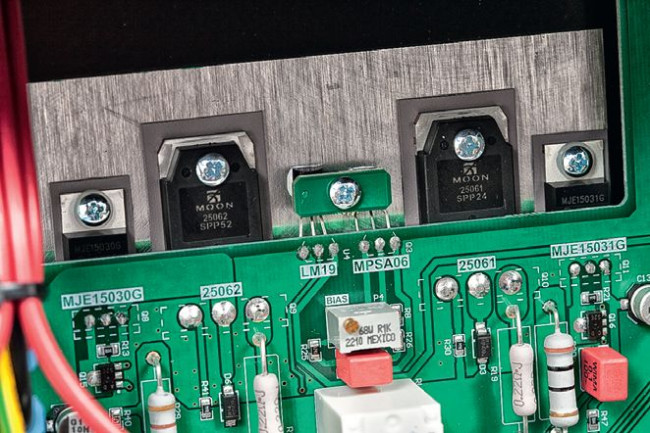 Para tranzystorów wyjściowych na kanał to rozwiązanie podstawowe, mniej standardowy jest sposób montażu, bez klasycznego radiatora.