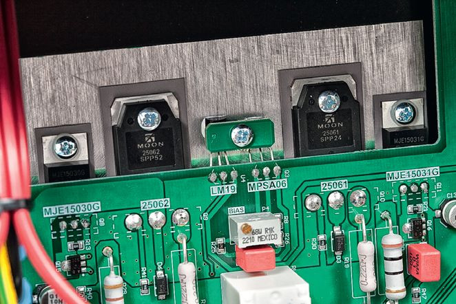 Konstrukcja końcówek mocy jest dość typowa (dwa tranzystory bipolarne na kanał), chociaż z trochę niekonwencjonalnym sposobem montażu i chłodzenia; tranzystory są przykręcone do wspornika w centralnej części chassis, a ten do dolnej płyty obudowy. Nie ma więc typowego radiatora, ale moc 250i V2 nie jest wysoka.