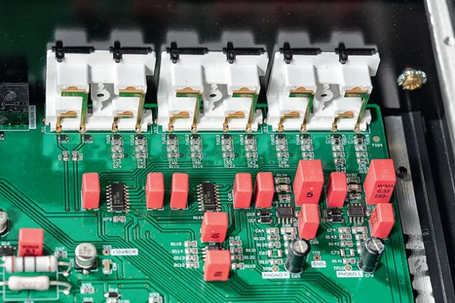 Przełączanie wejść odbywa się bezgłośnie, zamiast przekaźników zastosowano scalone przełączniki.