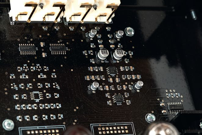 Preamp jest podzielony między dwa moduły; główny skupia się na wejściach (przełączanych w układach scalonych) oraz wzmocnieniu, w którym główną rolę grają dwie lampy 6922 (podwójne triody) produkcji Electro-Harmonix. Oddzielono (i umieszczono w pobliżu przedniej ścianki) regulator głośności oparty na "niebieskim" potencjometrze Alpsa.