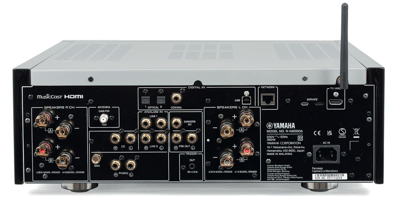 Yamaha R-N2000A jest w gruncie rzeczy właśnie takim wzmacniaczem, a fakt, że producent nazywa go amplitunerem, wynika z zaszłości – coraz mniej znaczącego dodatku tunera radiowego FM/DAB, który wręcz ginie w tłumie innych funkcji.