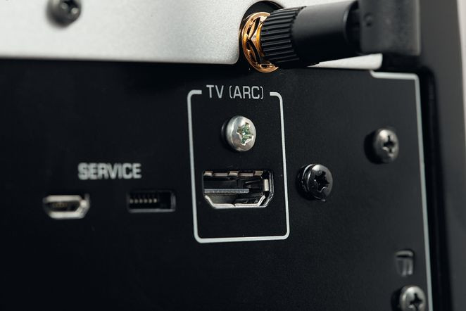 Doskonale prezentuje się też sekcja cyfrowa – są w niej dwa wejścia optyczne, jedno współosiowe, jedno HDMI (z kanałem zwrotnym eARC), a nawet USB (USB-DAC). Wyjścia głośnikowe są podwójne, z wygodnymi, metalowymi nakrętkami. Antena dla systemów bezprzewodowych jest jedna, uniwersalna dla Wi-Fi oraz Bluetooth.