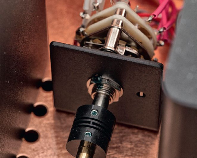 Pojawia się on w ścieżce sygnału jako pierwszy, do wybieraka przylutowano krótkie odcinki przewodów połączone ze znajdującymi się obok gniazdami RCA. Wyjście z selektora źródeł trafia już do solidnych, ekranowanych interkonektów, następnie sygnał nurkuje poprzez szczeliny do dolnej komory.