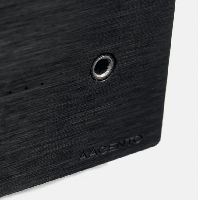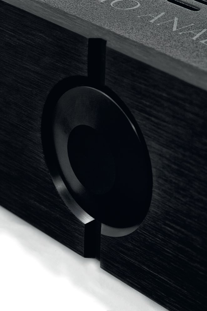 Chociaż na zdjęciach wygląda dość niepozornie, Audio Analogue AAcento jest spory i ciężki. Jedynym elementem regulacyjnym na froncie wydaje się "wtopione" pokrętło. Gałka obraca się lekko i przyjemnie, chociaż byłoby chyba lepiej (przynajmniej dla wygody), gdyby chociaż delikatnie wystawała przed powierzchnię.