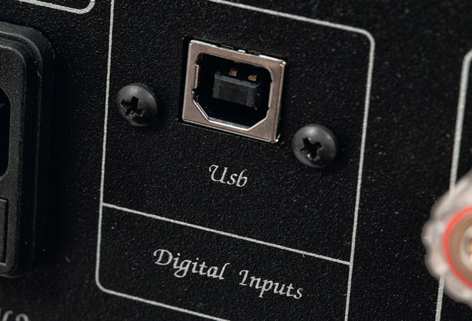 Nie ma natomiast wyjścia słuchawkowego; oczywiście można podłączyć zewnętrzny wzmacniacz słuchawkowy, ale to przecież dodatkowy wydatek. Na tylnym panelu pojawia się kilka nietypowych rozwiązań. Po lewej stronie znajduje się złącze USB przyjmujące PCM 32 bit/384 kHz oraz DSD128.