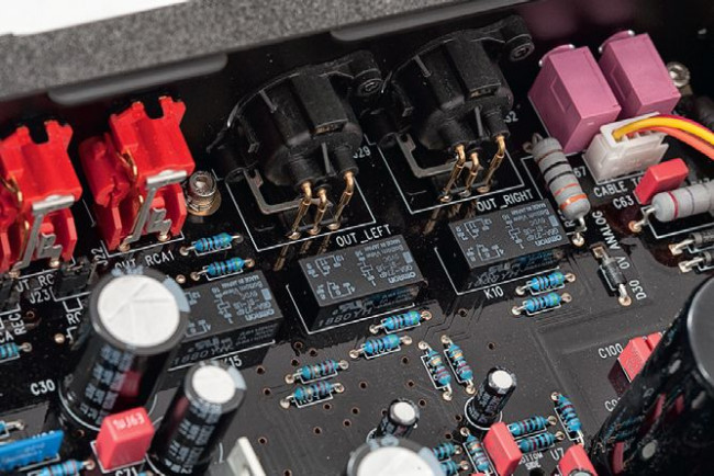 Symetryczna konfiguracja całego toru wymaga zdublowania wszystkich gałęzi (także tych SoundEngine), co jeszcze skuteczniej obniża zniekształcenia. Nie tylko wejścia, ale i wyjścia są załączane przez przekaźniki.