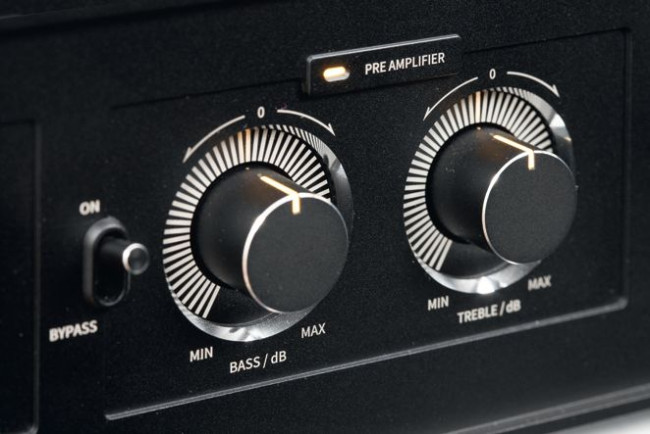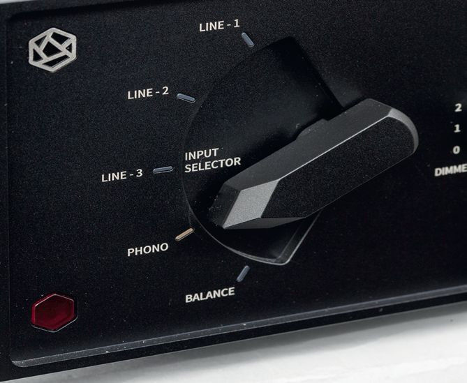 Do wyboru źródeł służy przełącznik z lewej strony, pokrętło regulacji głośności (działające w najbardziej klasyczny sposób) znajduje się z prawej; środek podzielono pomiędzy regulatory barwy oraz wskaźniki wychyłowe.