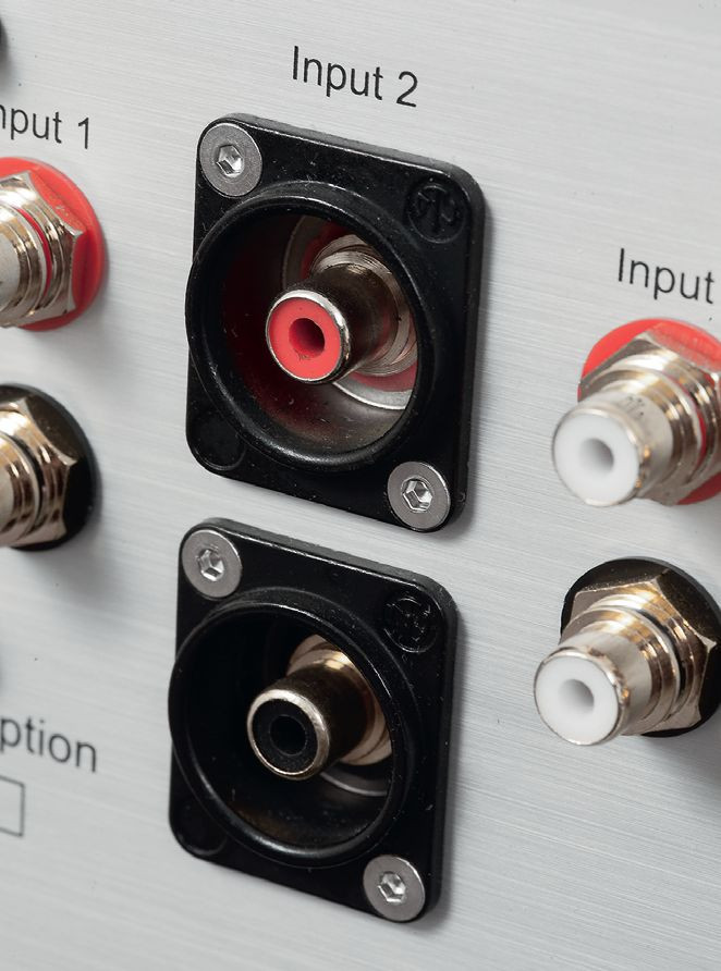 Można zainstalować wewnętrzny moduł przedwzmacniacza gramofonowego (który obsługuje wkładki MM i MC); trzpień uziemiający jest już na miejscu. Druga opcja to wejście zbalansowane XLR.