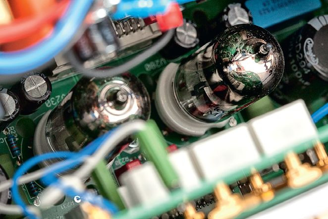 Przedwzmacniacz współtworzą dwa moduły. Jeden z nich obejmuje dwie lampy E8CC (czyli odpowiednik popularnych 6922) firmy Electro Harmonix. Występują one często w stopniach wejściowych – to podwójne triody o umiarkowanym wzmocnieniu.