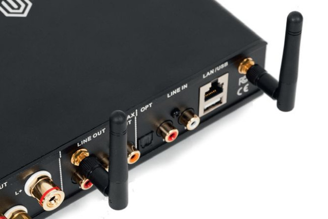 Możliwości sieciowe wiążą się oczywiście z transmisją LAN oraz Wi-Fi, jedna z dwóch anten służy Bluetooth (z kodowaniem aptX HD). Pliki można też "przynieść" na nośnikach USB. Jedno wejście analogowe, liniowe jest ratunkiem na wiele okoliczności, służy również do podłączenia gramofonu.